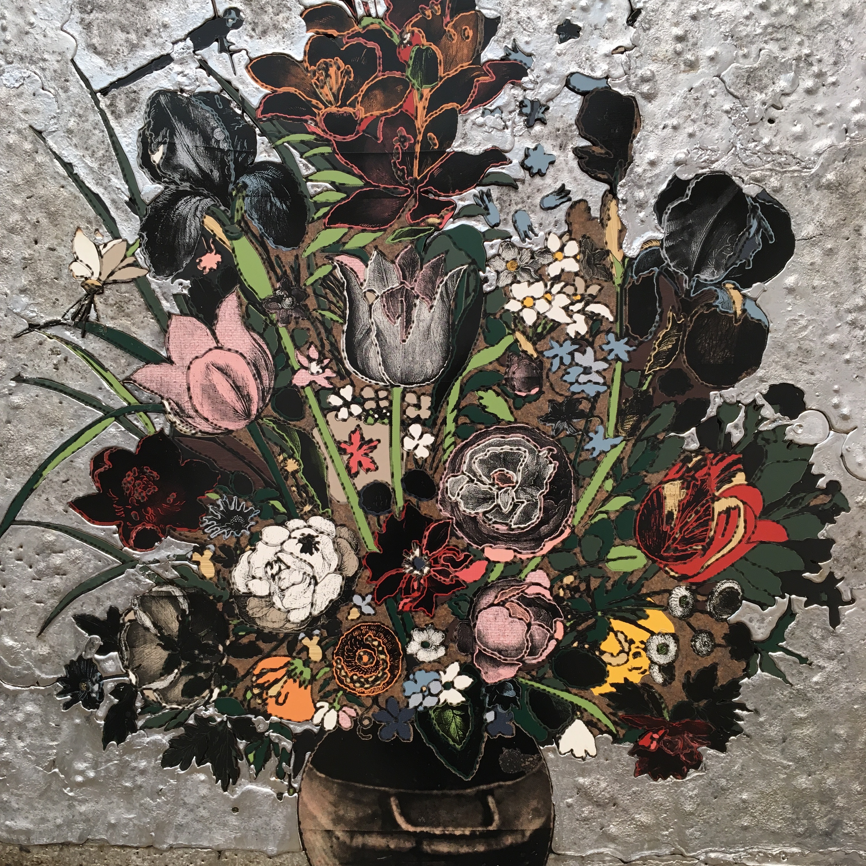 Matthew Day Jackson creates fascinating collage reinterpretations of flower paintings from the 16th and 17th century made with artificial, manufactured and contemporary materials on show at Hauser & Wirth.