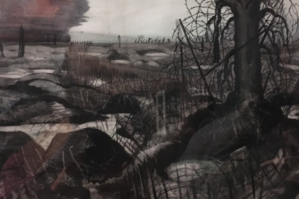 For the last four years we’ve been immersed in memories of the First World War as centenary of its conclusion approaches and it’s been fascinating and moving to review the art which recorded the slaughter and devastation on a scale the world had never seen before. Those images of shell-blasted battle fields, ruined trenches, mud, puddles, corpses and dreadful injuries fix in the mind.