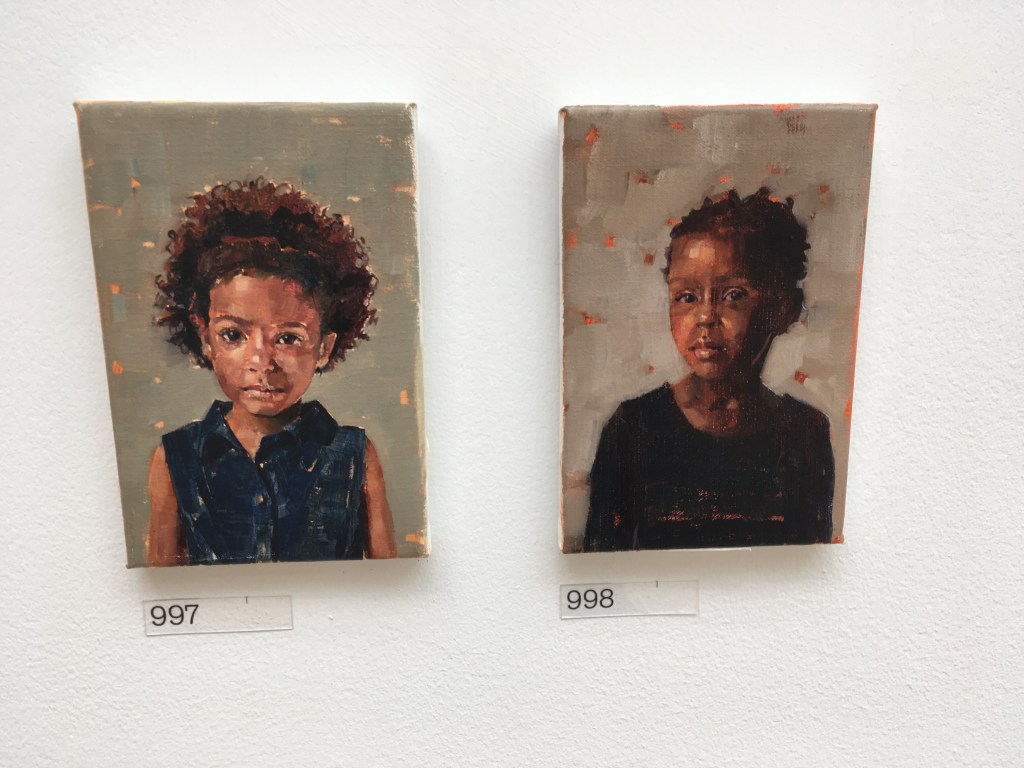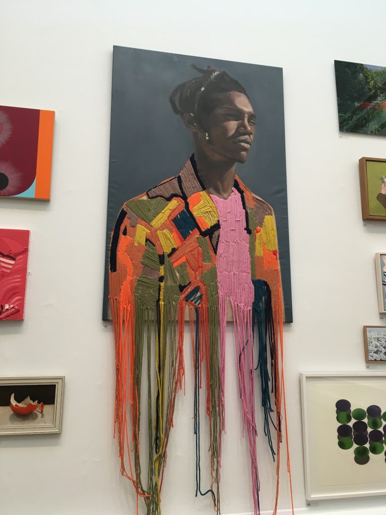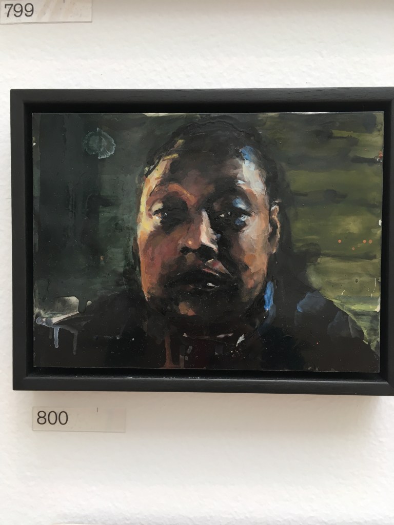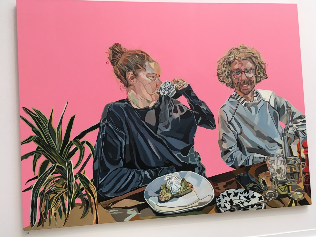 This lively portrait caught my eye and made me smile. It’s called breakfast with Violet and Adam and it’s a large oil painting by Joy Labinjo. A very original and engaging style. I liked the direct gaze of Adam, looking out of the picture.