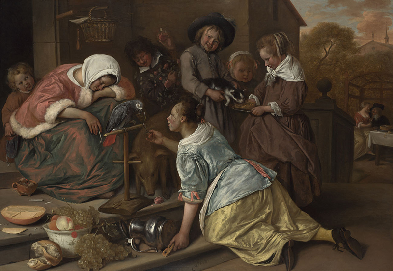There’s also a painting by Jan Steen called The Effects of Intemperance. Oh dear, mother is drunk again and the children are running riot. It’s a very amusing narrative painting which provides far more visual fun than an perfectly well-behaved family staring politely out of the frame.