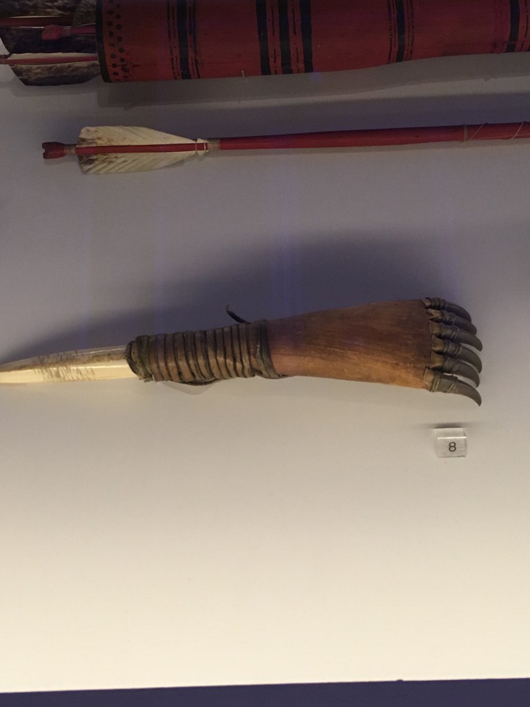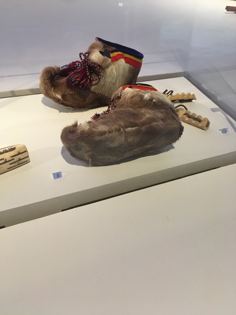 Hunting is a vital aspect of life in the Arctic. Clever strategies for trapping, spearing, harpooning and capturing animals and fish are illustrated in the displays.Rather than using the word hunting, the arctic peoples refer to it as ‘harvesting’. But I really liked the little ‘claw’ created to scrape on the snow and imitate the sound of a seal sunning itself on the ice. The familiar noise would lull the prey into sleepy view making it easier to catch.
