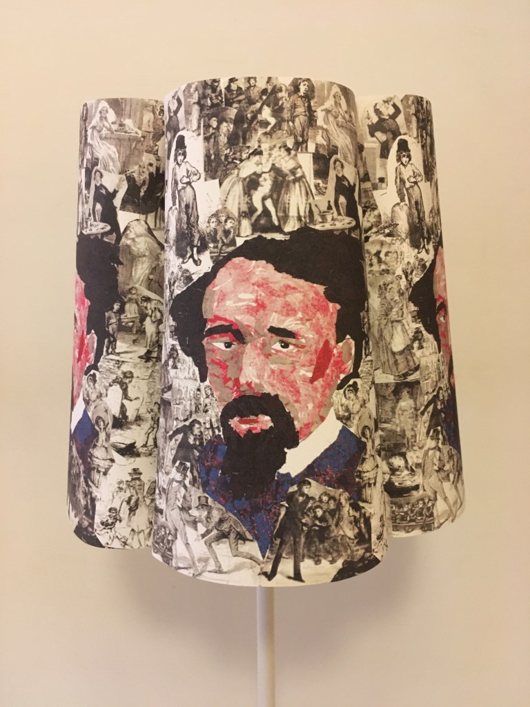 During lockdown I’ve had rather more time in my studio than usual and busy with new paper collage designs for my Papershades. The latest collection celebrates books and writers. I’ve found great pleasure in reading ‘old friends’ during lockdown and decided to immortalise some of my favourite authors on a Papershade. It all began with the Brontes. I created a Papershade of Yorkshire and this was an extension of my love of the county. What astonishing siblings they were and how atmospheric the Parsonage at Haworth is. I read Jane Eyre first and adored it. I wasn’t as enamoured of Wuthering Heights as other people and came late to Anne Bronte’s books but loved The Tenant of Wildfell Hall.
