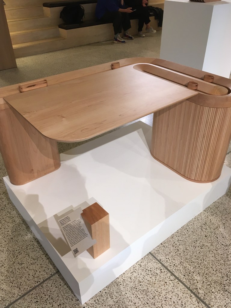 The Riverside Bench by Juan Carlos Franco and Juan Santiago used American Cherry to create a versatile bench which works in the home, at work and has built in containers and surfaces.