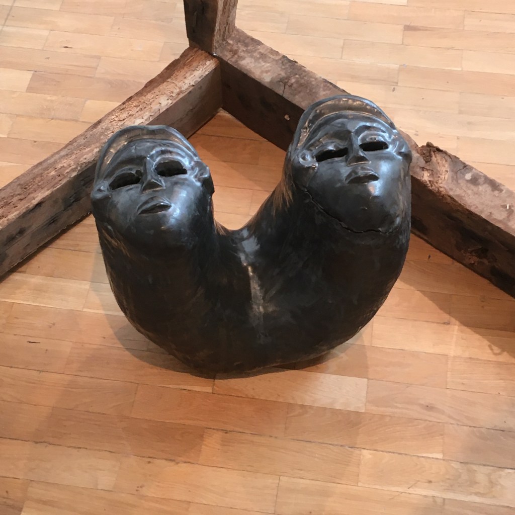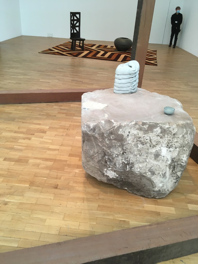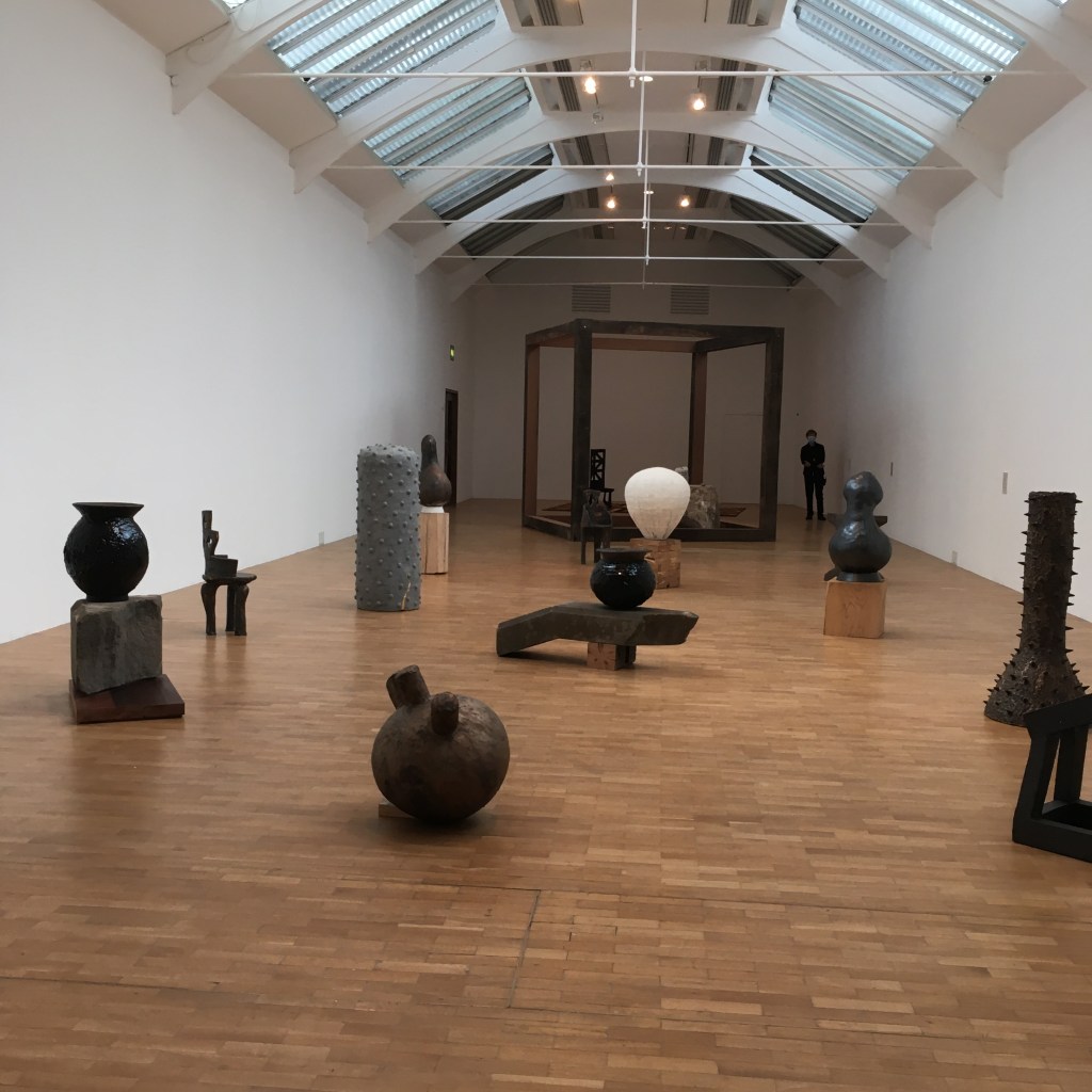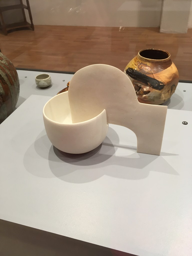 I loved the huge clay pots by Peter Voulkos (below) on the ground floor, a mix of slab built and wheel-thrown pieces, which look as though they’ve been smashed and glued together – a thought abstracted by some major disaster in the kiln but handsome in their celebration of process.