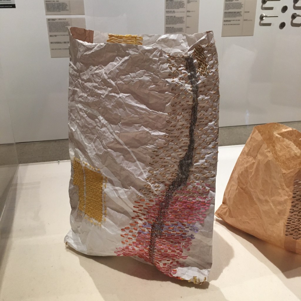 And, as a little postscript, as a paper enthusiast, I did enjoy the stitched paper bags by Celia Pym. She took a variety of paper bags used for her shopping and carefully mended each rip and tear. Lovely stuff!