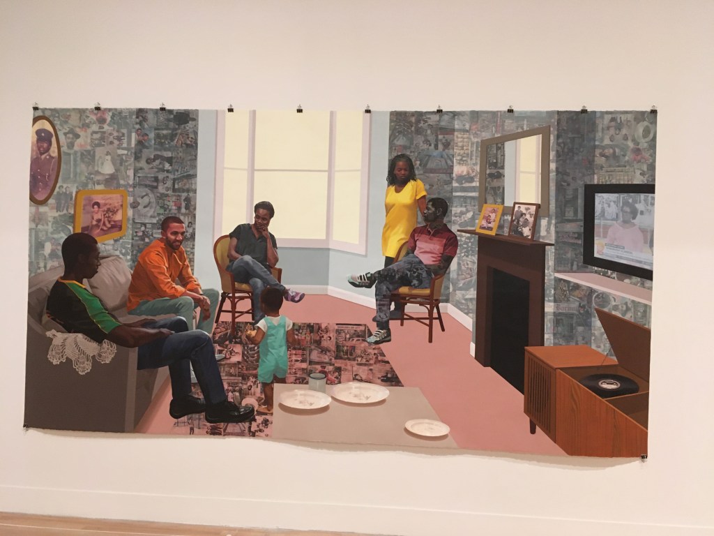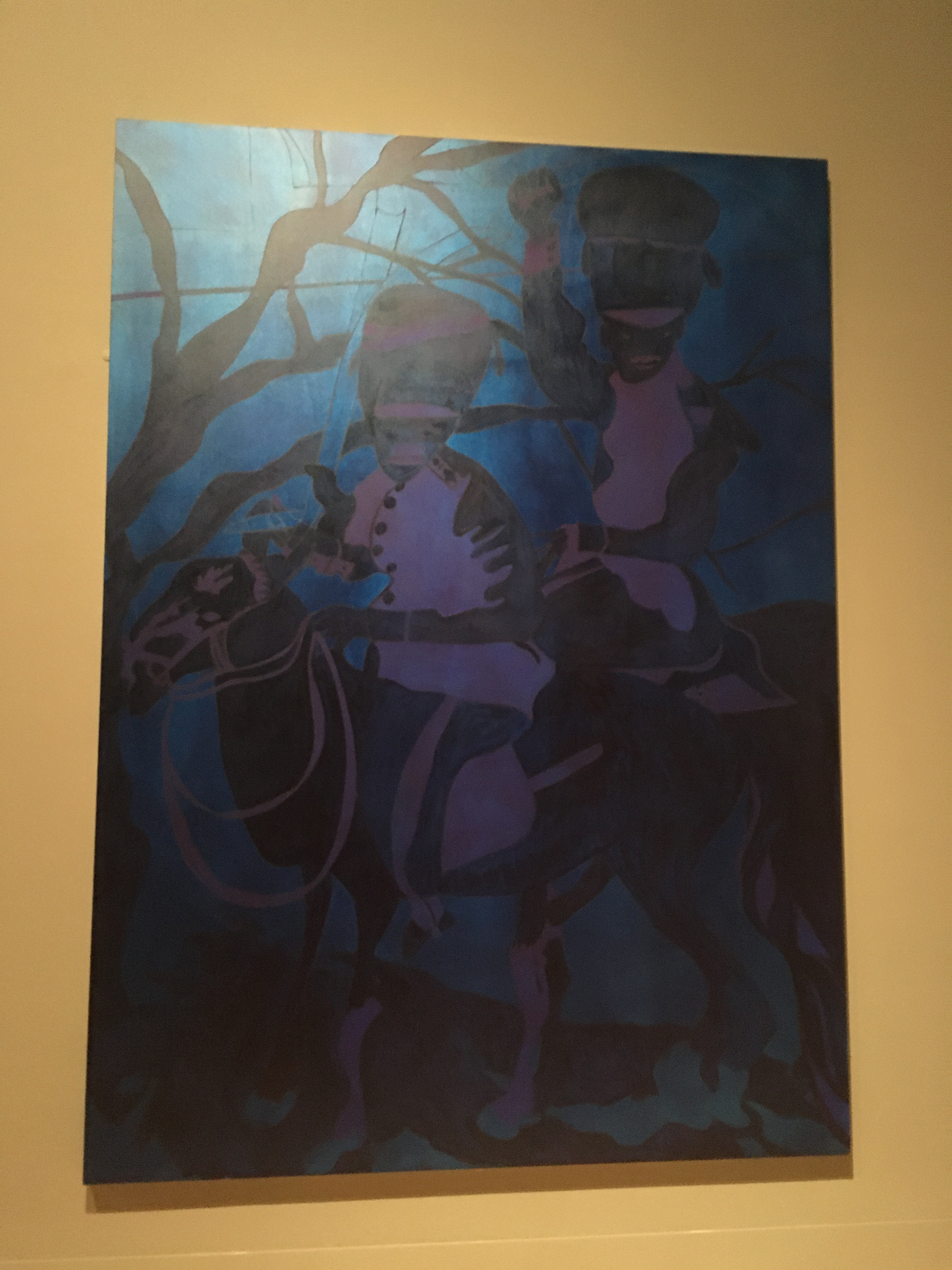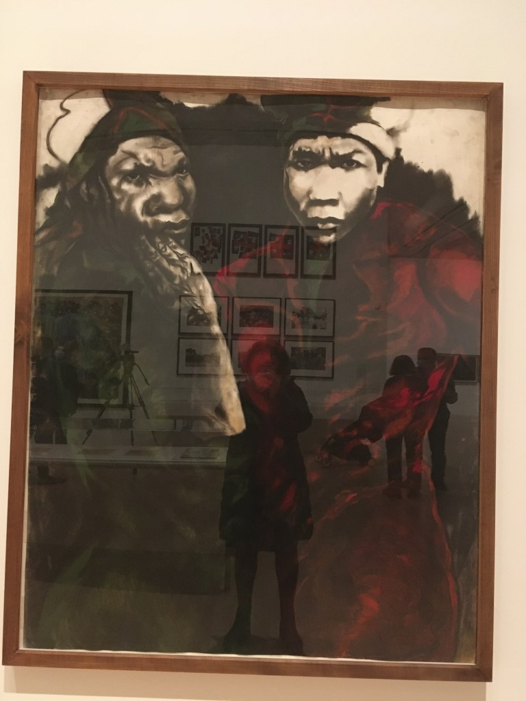 This, above, is one of the last paintings on show. It is by Njideka Akunyili Crosby (born 1983) entitled Remain, Thriving. It’s a work on paper made with acrylic paint, transfer print, coloured paper and pencil. It imagines a gathering of the grandchildren of the ‘Windrush generation’ and references the Windrush scandal of 2018.