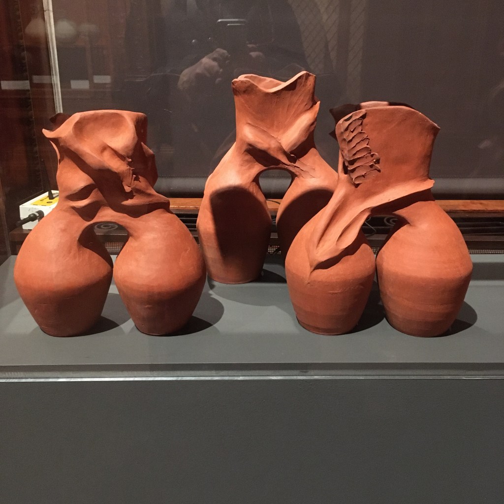 The exhibition covers around 70 years of pottery practice and artistic evolution. In the upper rooms there are films, such as Jade Montserrat’s performance, Clay (2015 filmed by Webb-Ellis) where she immerses herself in clay, naked, digging, shifting great clods of clay and covering her body with a layer of liquid clay.