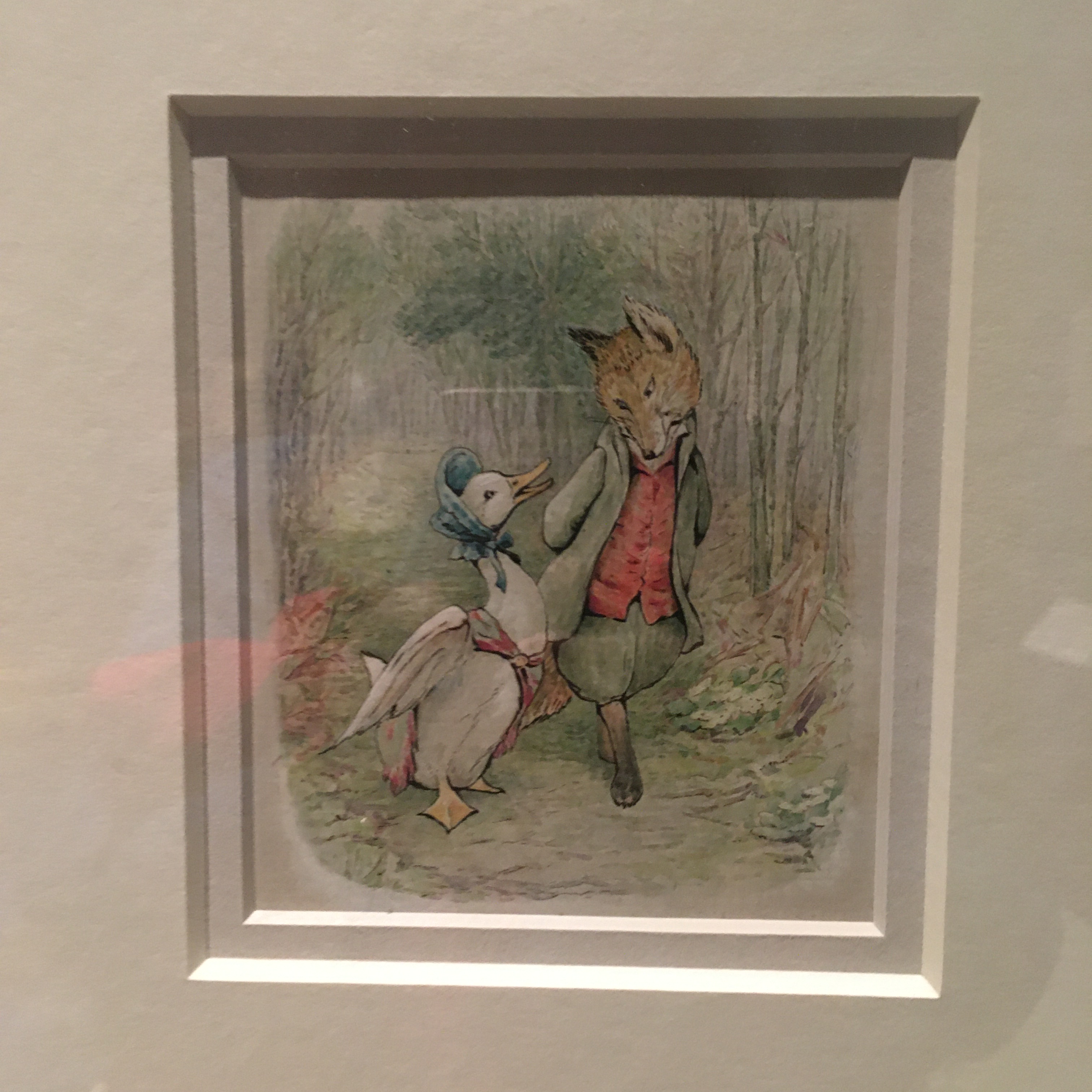 It was a joy to see the originals of some of those famous watercolours painted by Beatrix Potter at the new exhibition at the Victoria and Albert Museum, Drawn to Nature. I hadn’t realised that the little books were printed to the same size as the small drawings of her characters. And they are all so charming.