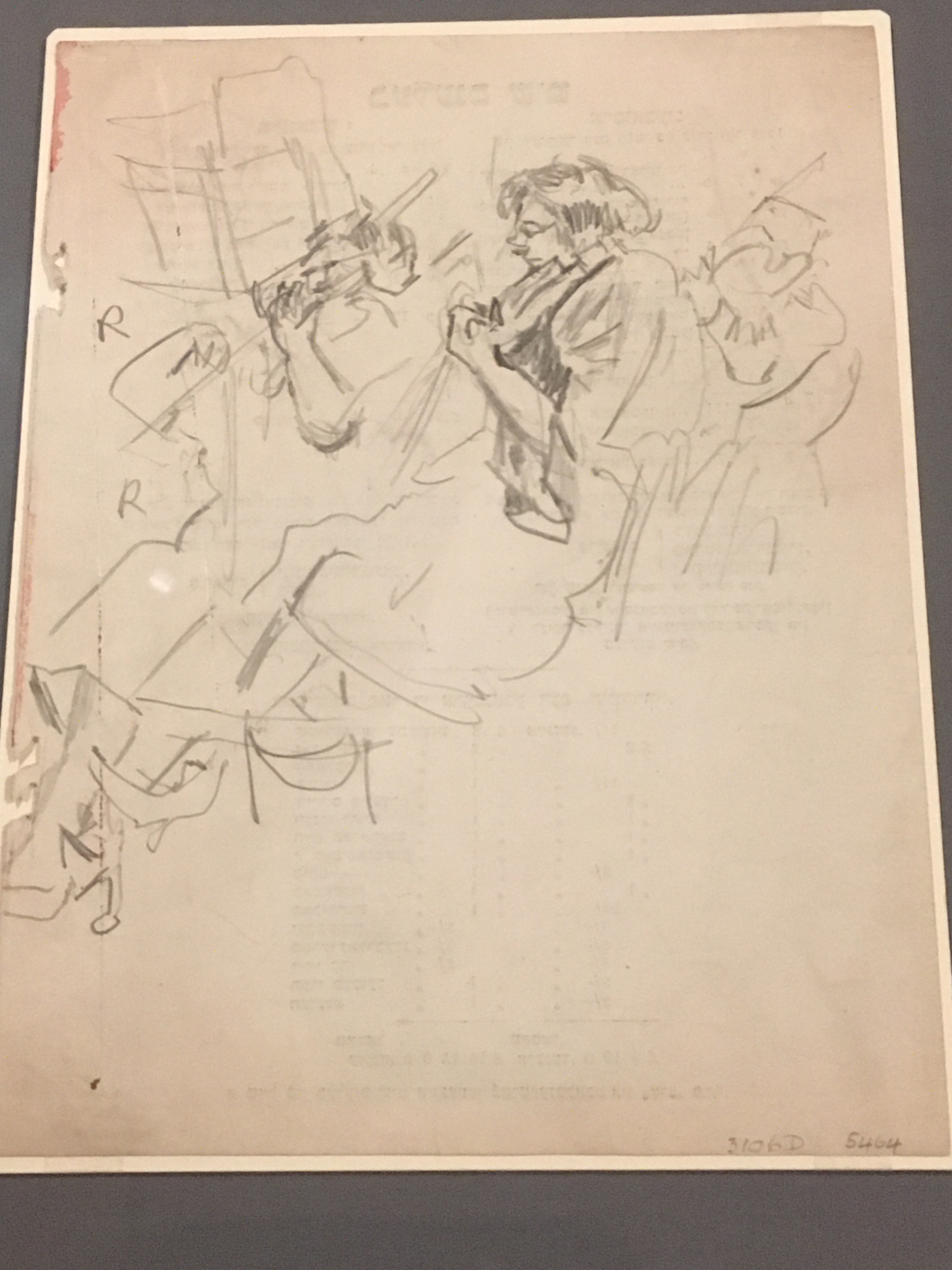 And finally, a few sketches which show us that Sickert didn’t only use photographs but liked capturing the action as it unfolded in quick and expressive drawings which inspired the paintings.