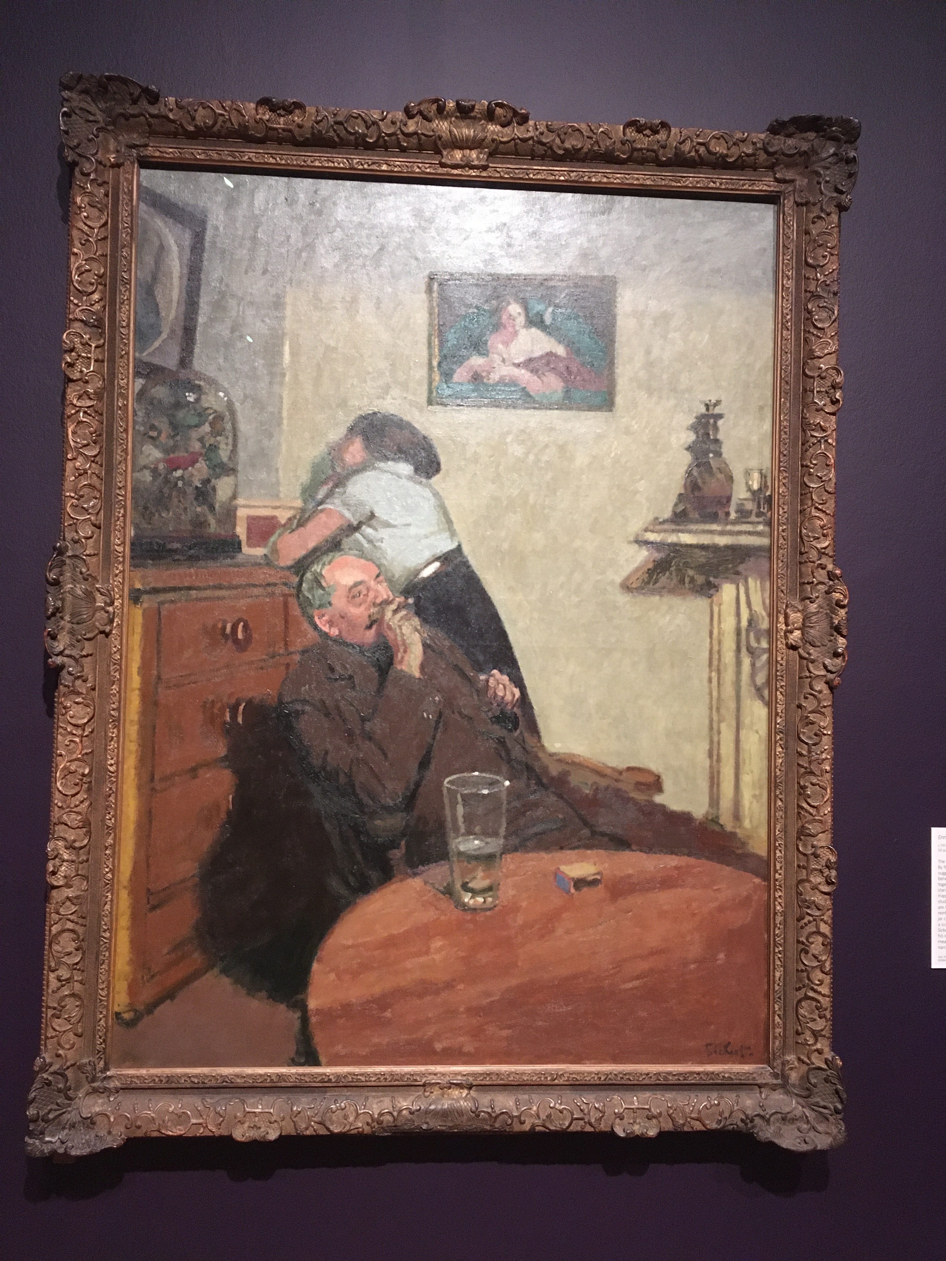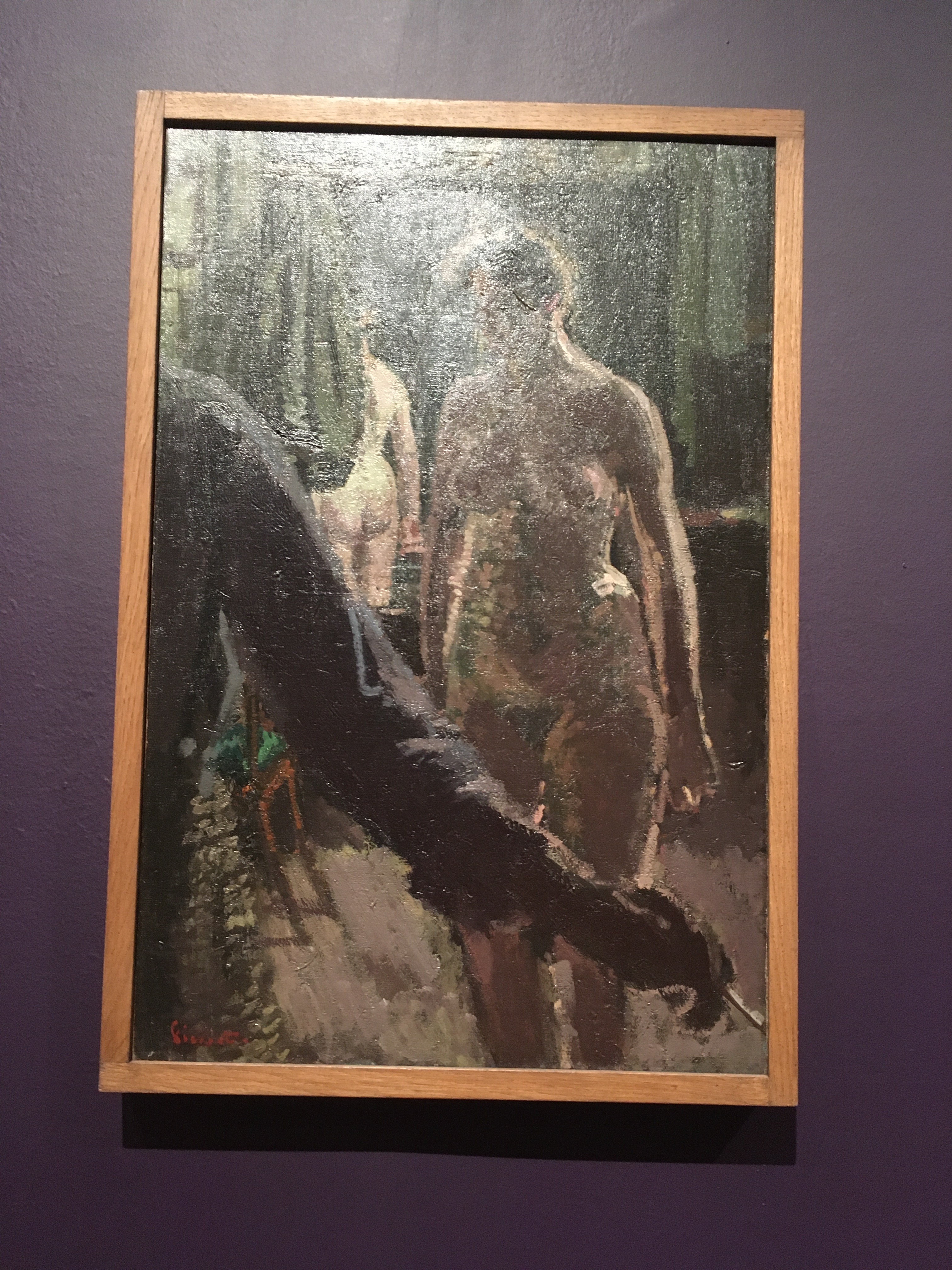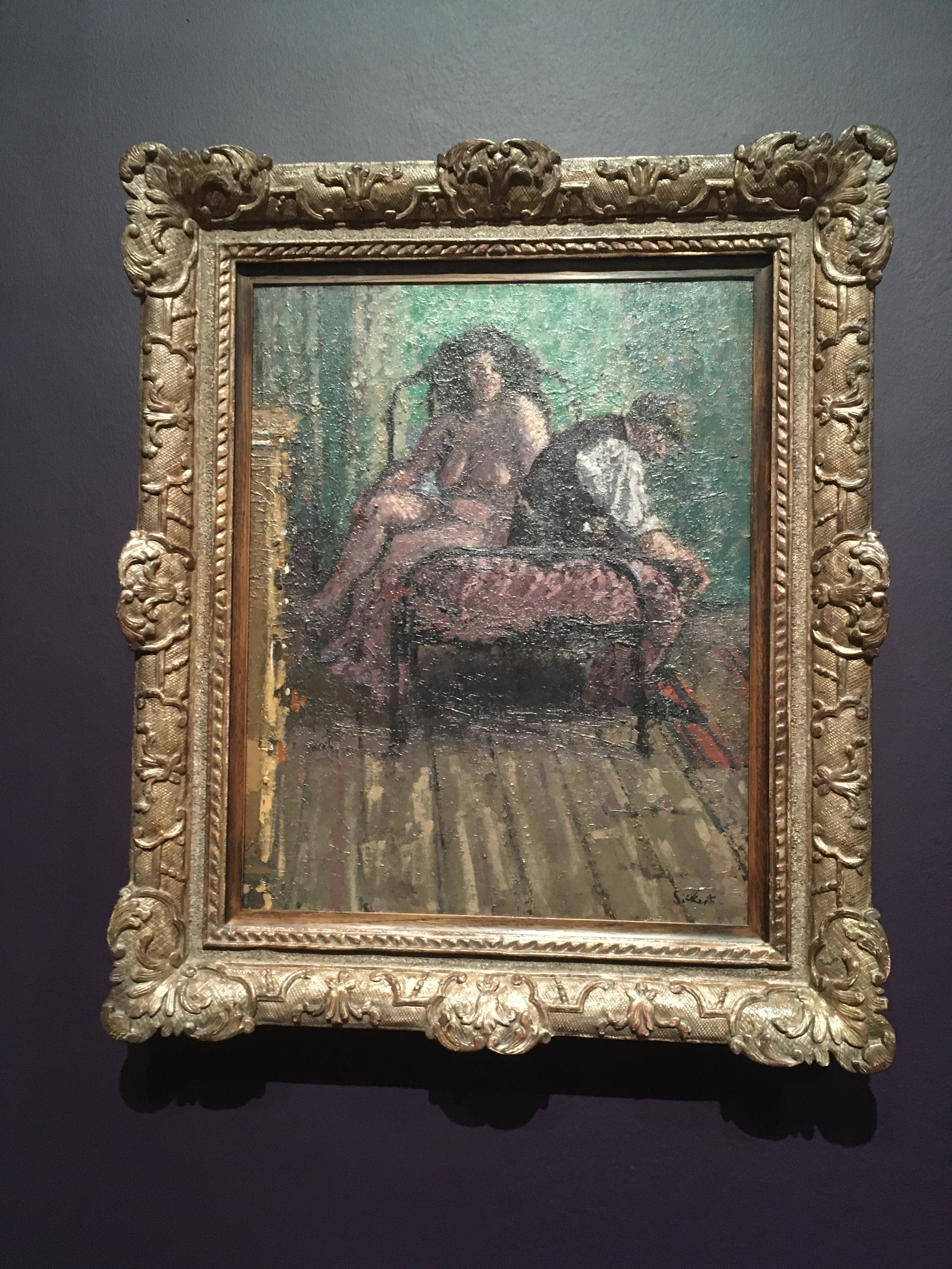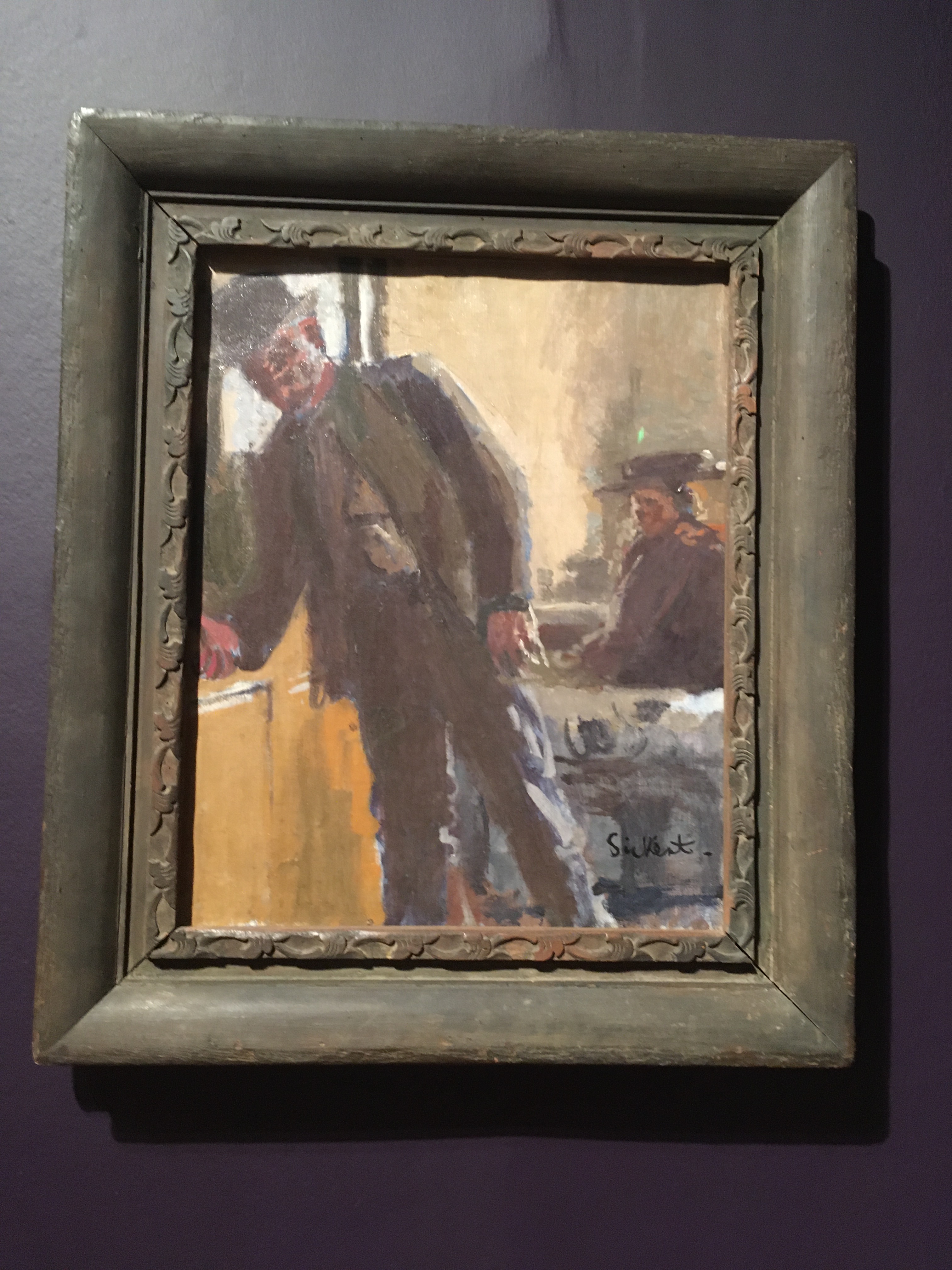 Ah, relationships. I get the feeling that Sickert was not successful in his relationships with women, but perhaps I’m reading these paintings too literally. These three all show couples operating at an emotional distance from each other. There is no tender gaze going on, more a sense that they’re on the brink of separating or just putting up with a claustrophobic situation. His Camden Town Murder range of paintings are unsettling. His nudes are amazing but you do feel that the women depicted have a defeated look about them.