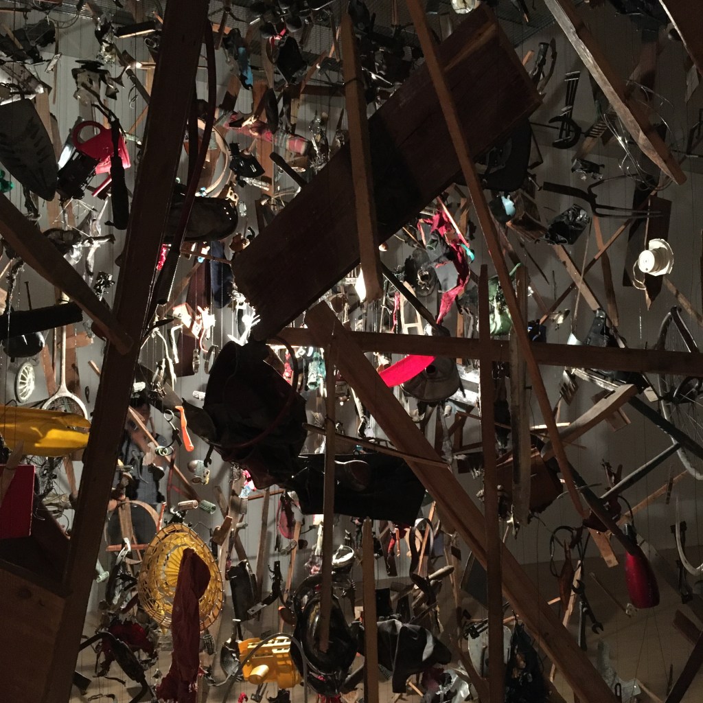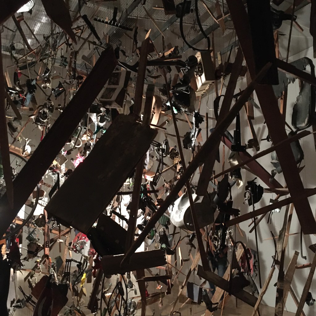 Cold Dark Matter : An Exploded View is great. Who wouldn’t want to blow up a garden shed? Parker worked with the Army School of Ammunition who obligingly obliterated an old shed and contents she transported to their training site. Then, when all the pieces were picked up after the explosion, she arranged them in this fabulous configuration, like a moment frozen in time, when everything was spinning away from its place and into space. You get a tension of what was once there, what was meant to be and what can be replaced by destructive actions.