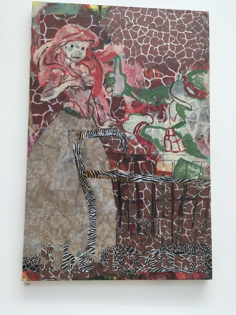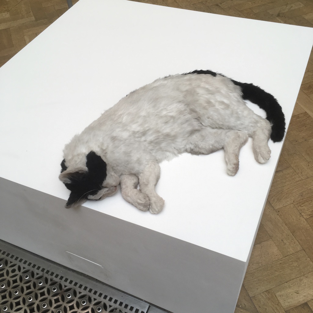 And this was an odd one. It’s a sculpture of a cat, a rather battered cat can be seen to breathe and sort of twitch. A bit unsettling at first and then you rather warm to the poor creature and want to stroke it. It has the title: Rest in Pieces, or the Squatters (Charlie meet Hammons’ untitled (Night Train) (1989) made of wood, latex, resin, synthetic fur, paint and animatronics by Ryan Gander RA. Yours for £66,000!