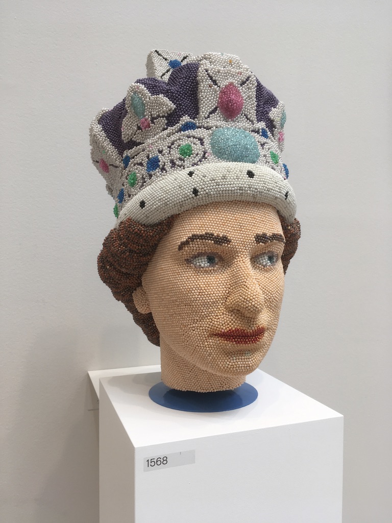 Above: Sisters Maud and Mabel by Elaine Preece Stanley Anarchy in the UK push pins wood and foam by David Mach RA and
