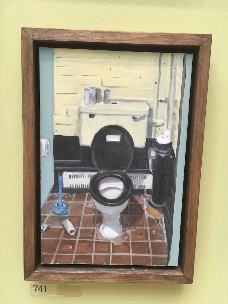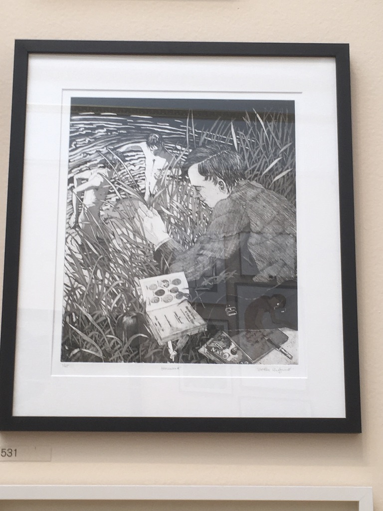 Above: Studio Toilet, Right Cubical by A. Lincoln Taber, Selection of prints by Sir Peter Cook RA, Family by Jill Leman, She Became by Sabrina Shah, Bacchanal by Paul Dash and The Punic Emojis in Glass, 2,3 and 1 by Stephen Farthing RA I was taken by the narrative element of many of these works. There’s nothing like seeing a story within a picture.