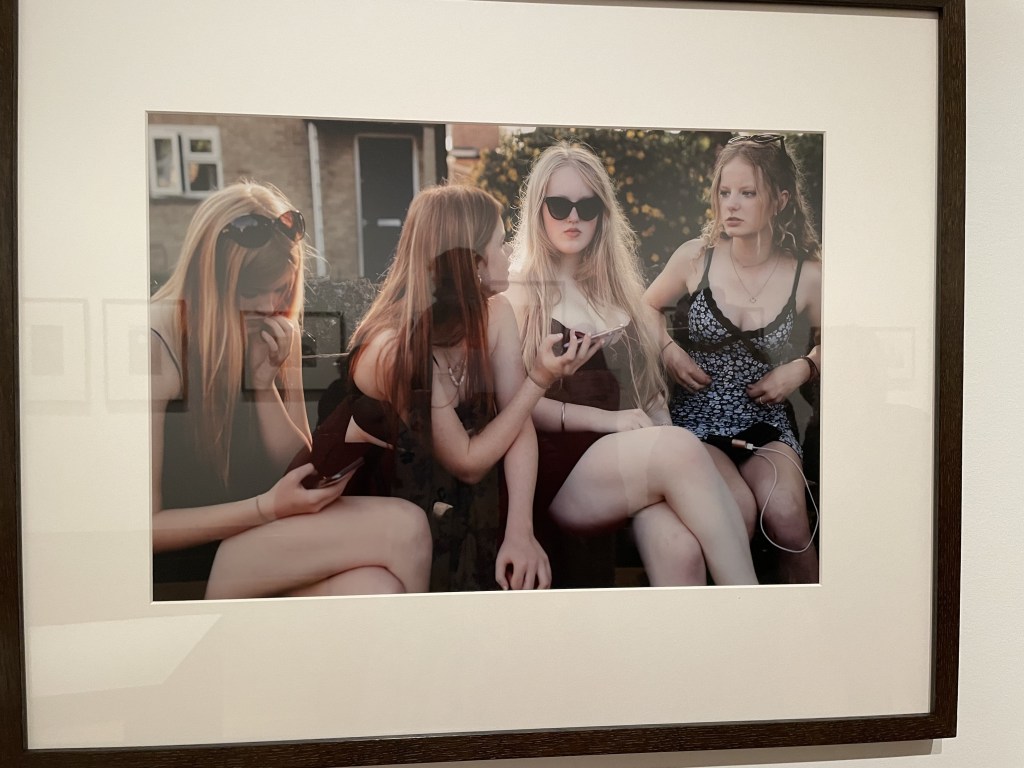 I liked this shot by Philippa James of her daughter, Lucy, in the glasses, and her 14 year old friends as they scroll their phones creating Tik Tok films. Lucy strikes a pose that, as James says in the notes on the wall, might have been learned from viewing other girls on social media.