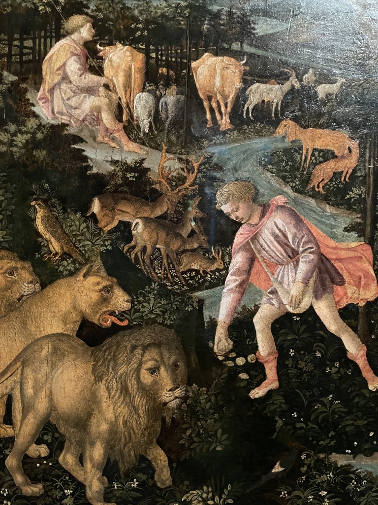 What a tragedy that he caught the plague in 1457 at the tender age of 35 and died. Vasari, who wrote about the lives of the artists of the period, rated Pesellino’s work and speculated on what he might have achieved if only he had lived. It’s a rare treat to see this charming exhibition at the National Gallery.