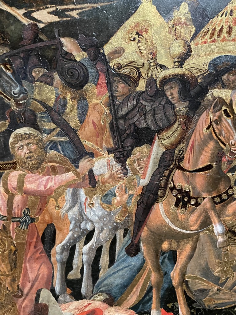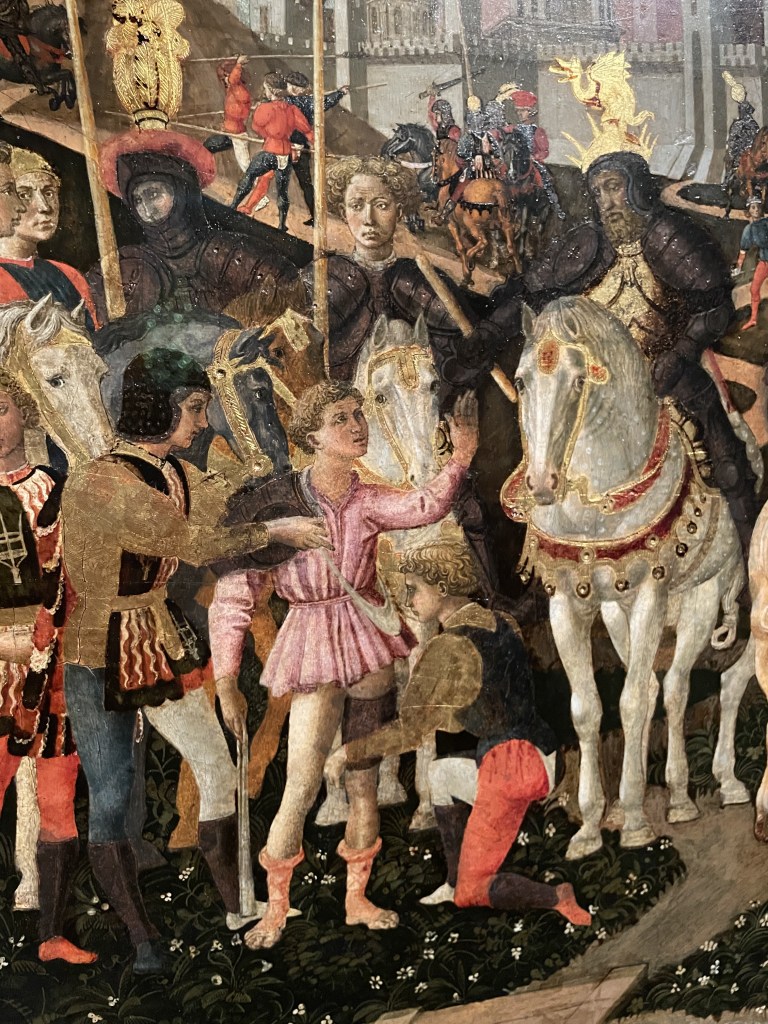These pieces must have taken a very long time to paint. It’s astounding to think that they were fixed onto boxes which, most probably, were commissioned by the Medici family in Florence and used to store everyday goods. Pesellino was a favourite with the illustrious family and used this connection to gain more commissions to make altar pieces and religious paintings.
