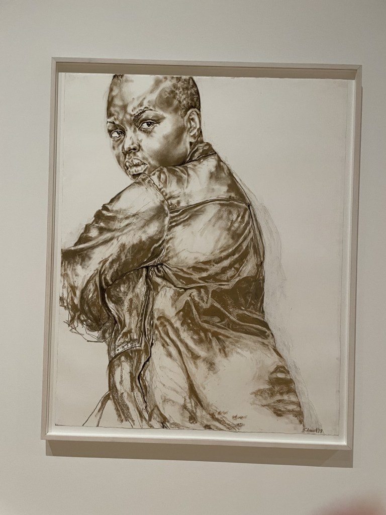 Above are four works by Claudette Johnson. After the immersion of the other rooms it was quite a relief to see portraits on canvas on walls. The subjects are Black men and women with a very striking narrative quality to each of them. Big, bold and expressive, I really liked these works.