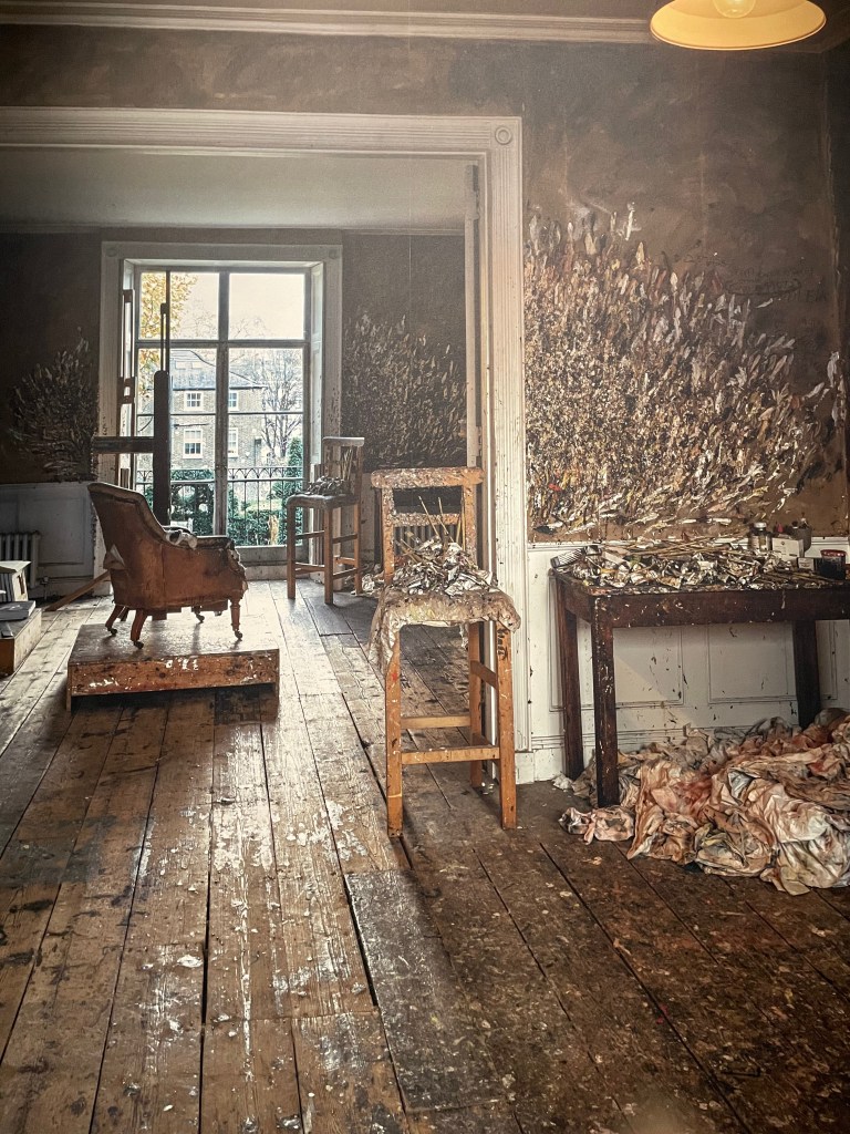 Right at the start of this show we are treated to a huge photograph of Freud’s studio in West London. It has the look and feel of one of his paintings and it’s quite moving to see the way he daubed the walls, furniture and floor with paint. Above is the picture and one of his later self-portraits.