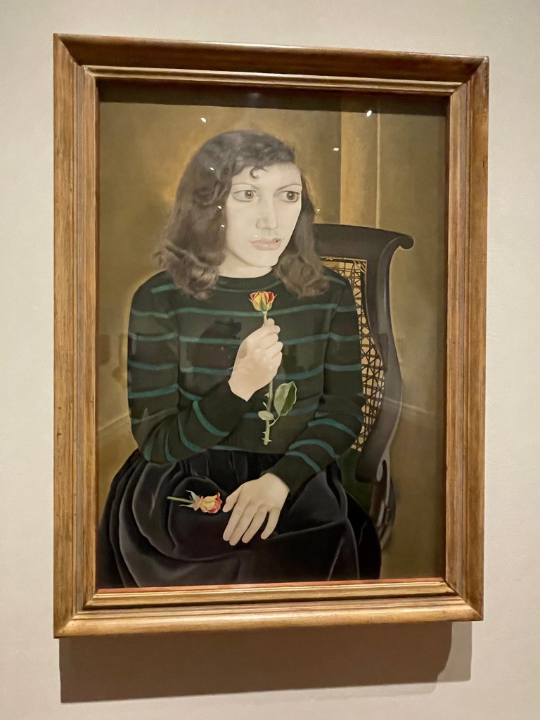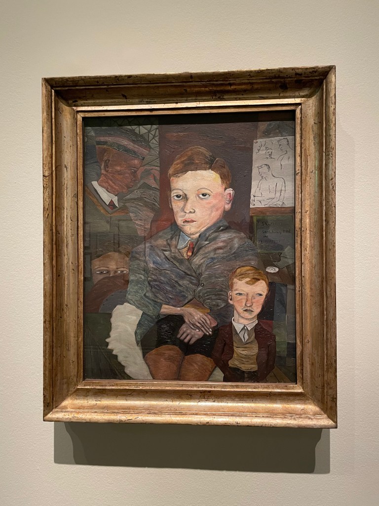 Anyone familiar with Freud’s work will know how he evolved from an artist fascinated by detail and fine lines into a painter who used large, bristle brushes and created his work from bold, expressive brush strokes. I was very intrigued by the early drawings on show. The middle one, above, is a self-portrait with hyacinth drawn with conte crayon on paper. On the left is Portrait of a Young Man and on the right is The Village Boys, which is oil on canvas from 1941 and probably painted when Freud was studying at the East Anglia School.