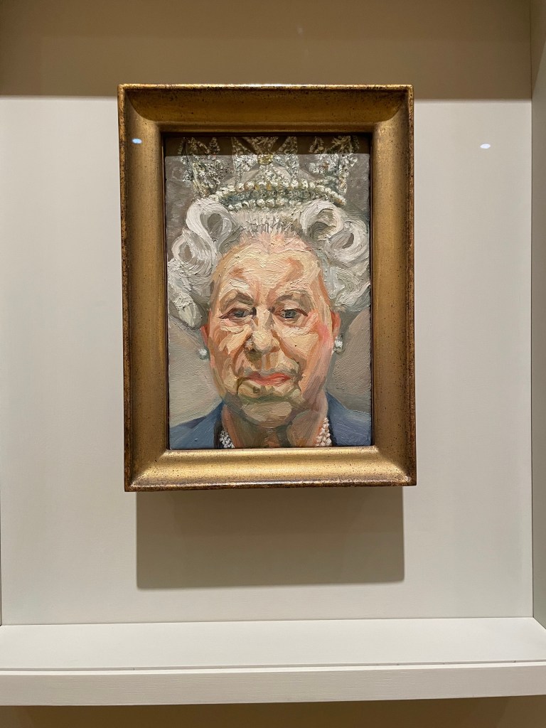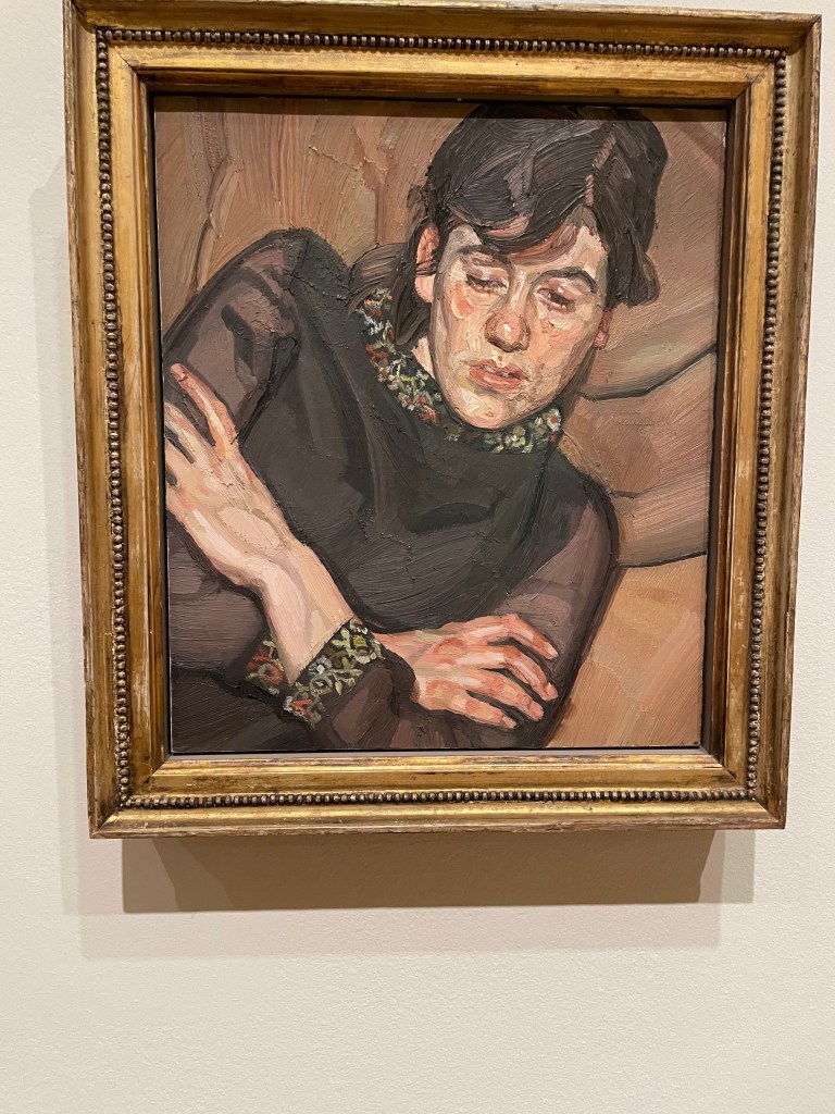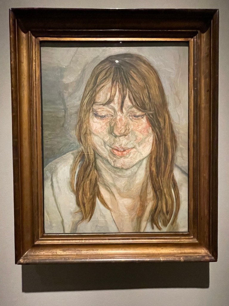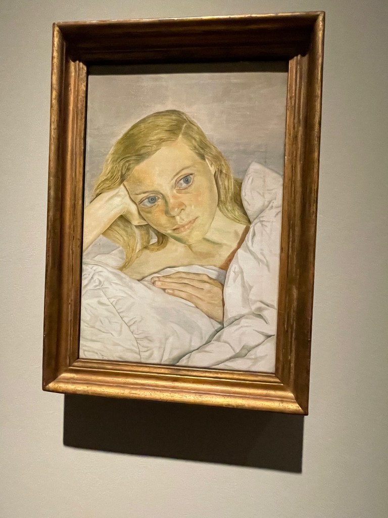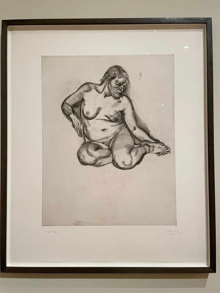 His portraits always seem to capture the sitter’s thoughts. There’s a really contemplative feel to these to portraits. On the left is his daughter Bella Freud, in the centre is a nude etching and on the right is Suzy Boyt – the painting is entitled Girl Smiling.
