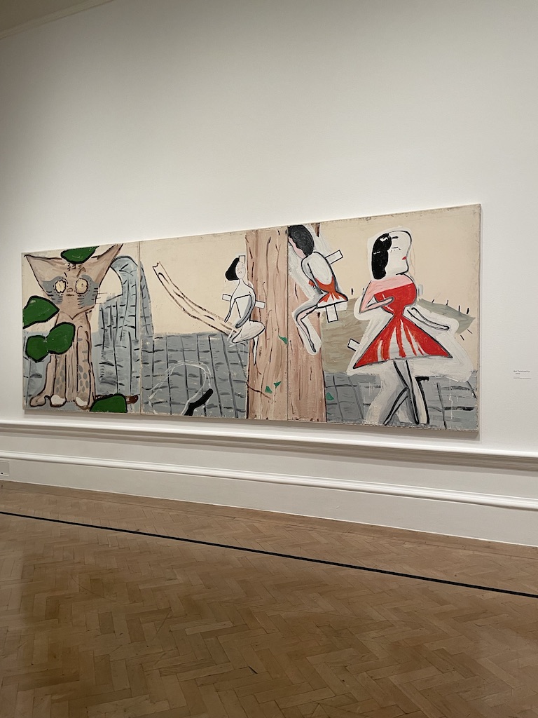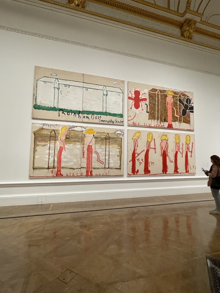 Very exhilarating to see this huge exhibition of work by Rose Wylie. She’s 91 and still busy working, having started making art in earnest in her seventies. And what a body of work she has created – it fills all the galleries of the Royal Academy. And, amazingly, she’s the first female artist to have been given a retrospective at this august gallery.