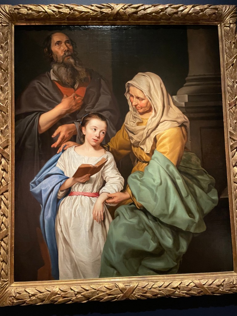 These two pictures, above, show great story-telling skills. On the left is the Mystic Marriage of St Catherine. On the right is The Education of the Virgin, a very sensitive picture of a young girl learning to read – a normal parent activity – yet it is clear that this child is destined for a special role