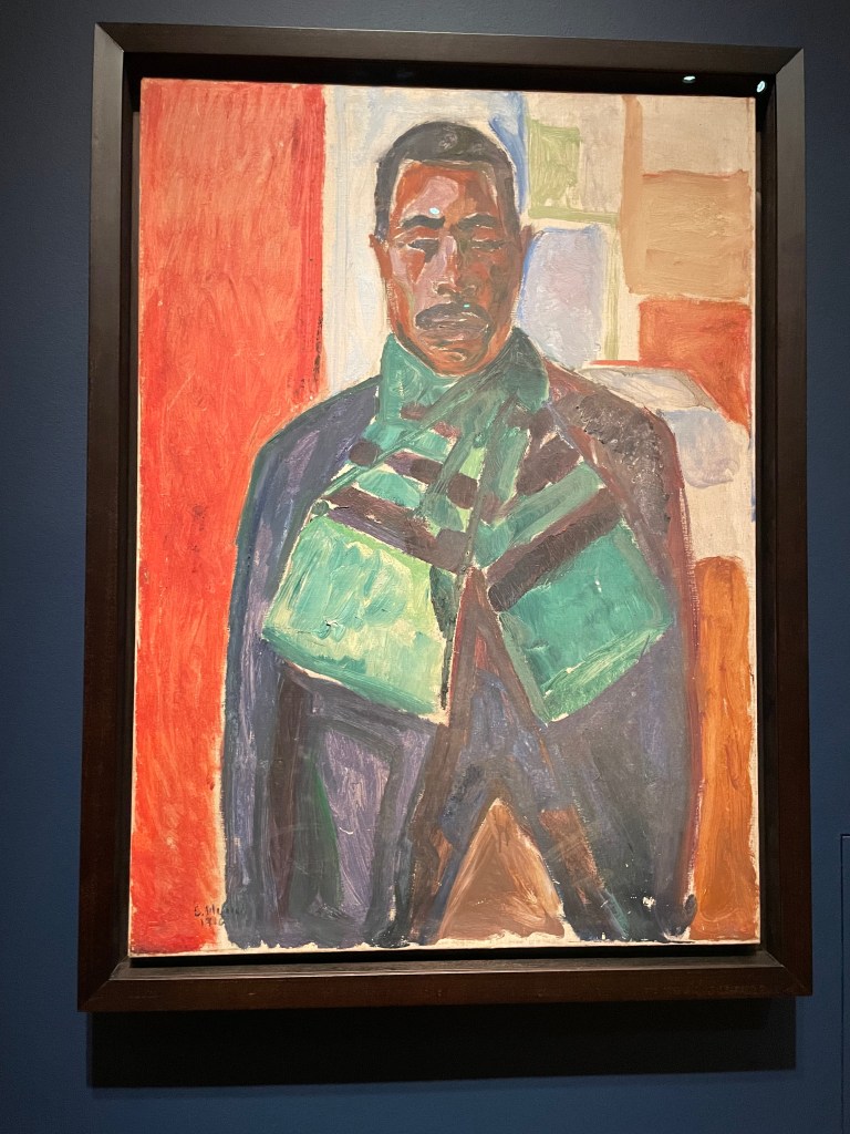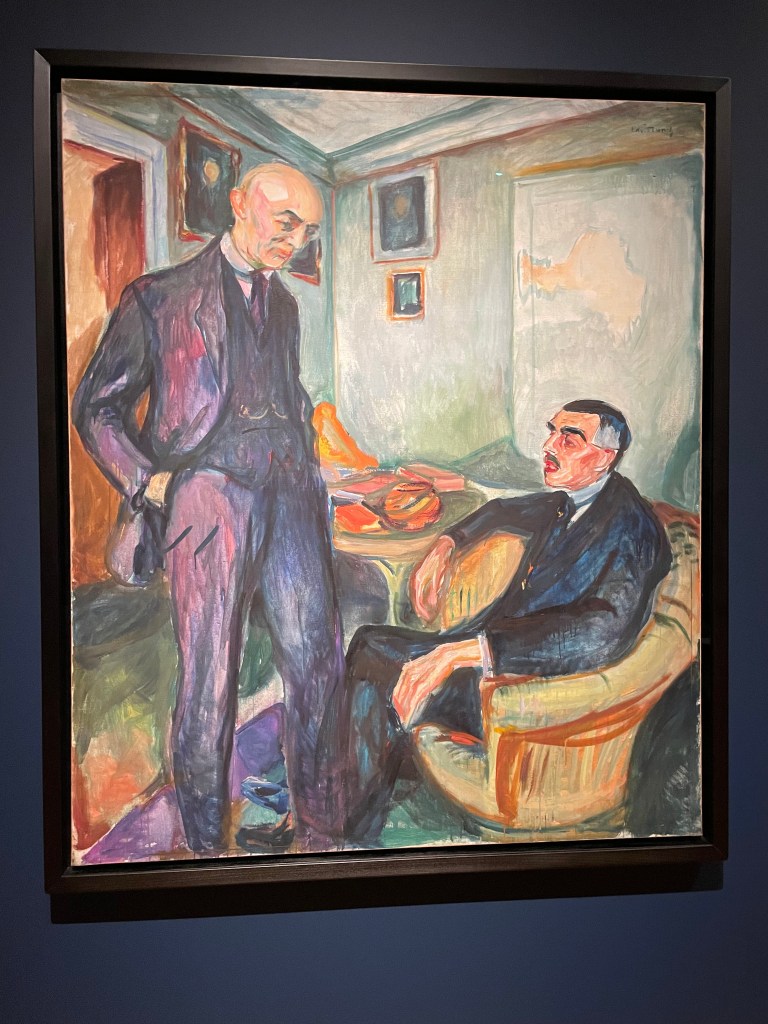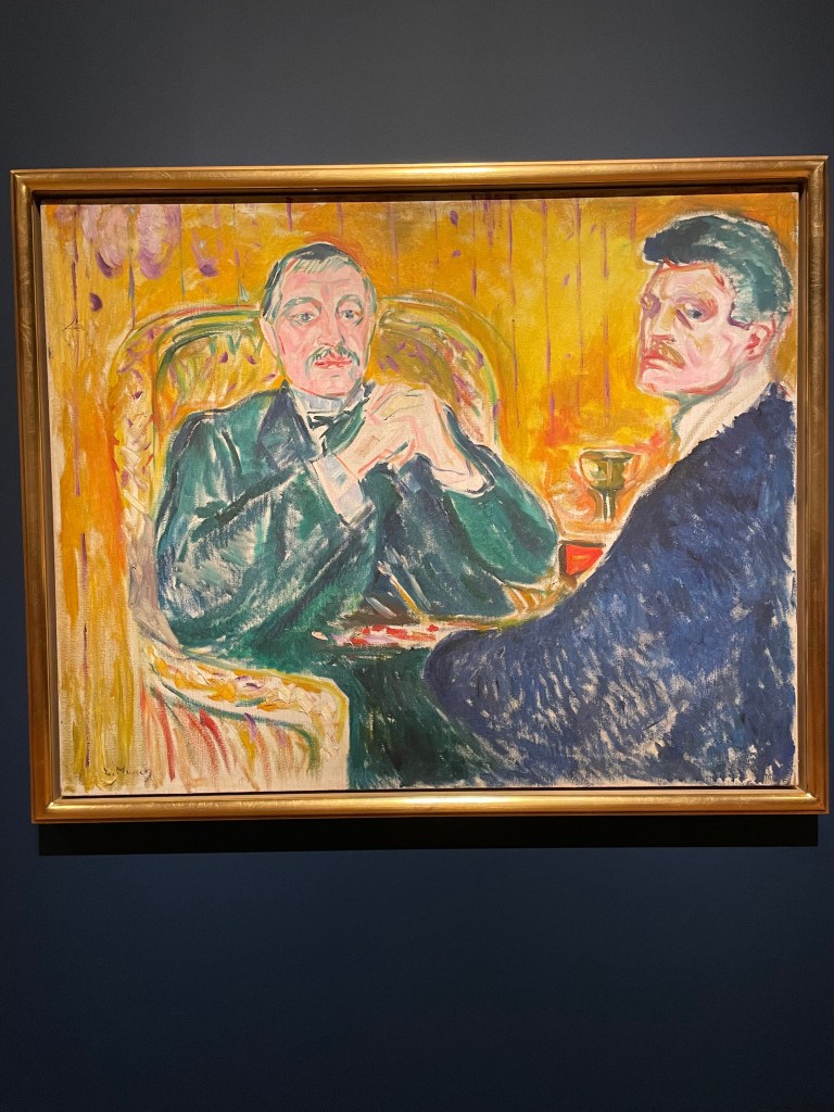 Colour! Yes, serious colour and, to my mind, a speediness of thought and hand in the creation of many of these portraits. I enjoyed the dribbles, splodges and daubs of hasty painting, as if he were in a great hurry to capture the subject in front of him and then get on with something else. Above: Torvald Stang, a friend, and self portrait of Munch.