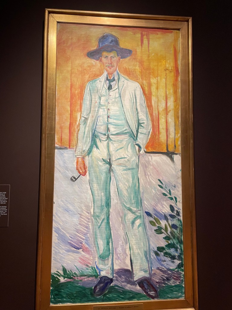 What’s absolutlely apparent is the free-flowing style we recognise from his later, angst-riven work. I like the direct gaze of his subjects. It looks as though they must have been deep in conversation when the portrait was being made and the affection between sitter and artist is very apparent. Above: the Norwegian colourist painter Ludvig Karsten in a ‘dandyish’ pose, August Strindberg, the playwright, and Sultan Abdul Karem whom Munch employed.