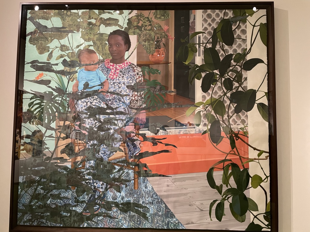 I was very drawn to this wonderfully layered painting by Njideka Akunyili Crosby which uses transfers, colour pencil, collage on paper and acrylic paint.