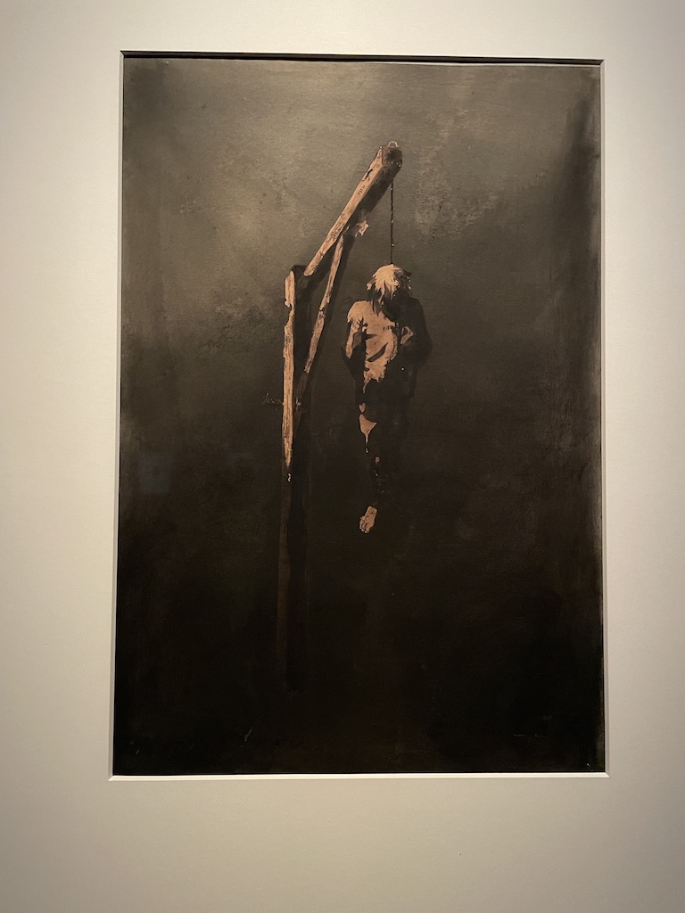 My takeaway from the show, apart from having thoroughly enjoyed it, was the chance to see the evolution of these two artists from detailed work, which might be as literal and accurate as possible, towards a much freer, expressive way of working. Both appear to have created their work at speed, using wonderful gestural swishes of paint or urgent daubs of white and black to denote drama and impact. They are both glorious. This is a wonderful show and well worth seeing.